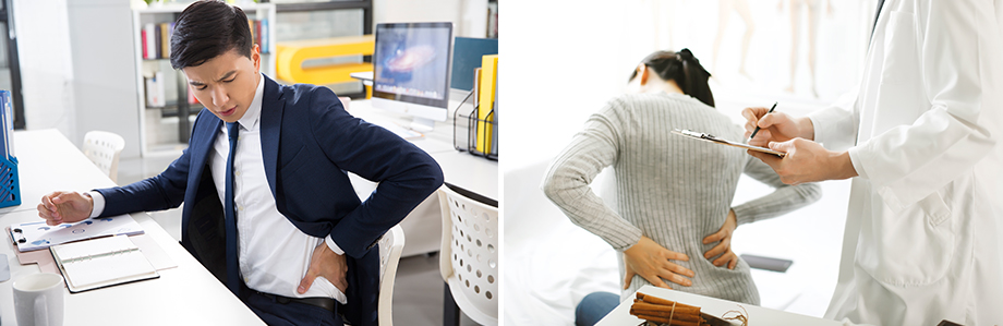 요통이나 퇴행성 디스크가 있는 분들은 바닥이 푹 꺼지는 소파나 의자에 조금만 앉아 있어도 통증을 느끼는데요. 이는 바닥이 푹 꺼지는 의자에 앉으면 척추 뒤쪽 관절과 인대, 허리디스크 등에 큰 압력을 가해지기 때문입니다. 그러므로 의자를 고를 때는 가능한 바닥이 딱딱하고 등받이가 있는 것을 선택하고, 앉을 땐 엉덩이를 의자 깊숙이 넣어 앉아 등받이에 허리를 기대는 것이 척추에 가해지는 하중을 분산시키는 방법입니다.