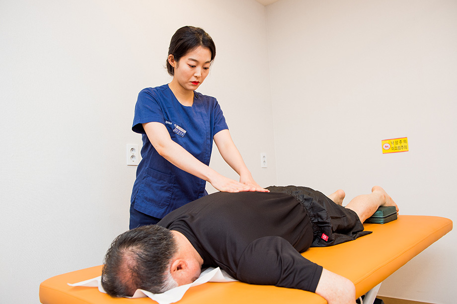 말기 척추협착증은 조금만 가만히 있어도 근육과 인대가 뭉치는 특징을 가지고 있습니다. 따라서 추나치료와 더불어 추가적으로 특정 근육을 풀어줘야 할 필요가 있는 경우에는 도수치료를 추가적으로 진행할 수 있습니다. 모커리한방병원의 도수치료는 충분한 시간과 정성을 들여 1:1 수기로 진행하기 때문에 뭉친 근육과 인대를 풀어주는데 많은 도움이 됩니다. 손으로 직접 긴장된 근육을 찾아 풀어줌으로써 통증을 제거하고, 기능을 회복하여 일상생활의 불편함을 최소화할 수 있도록 도움을 드립니다.