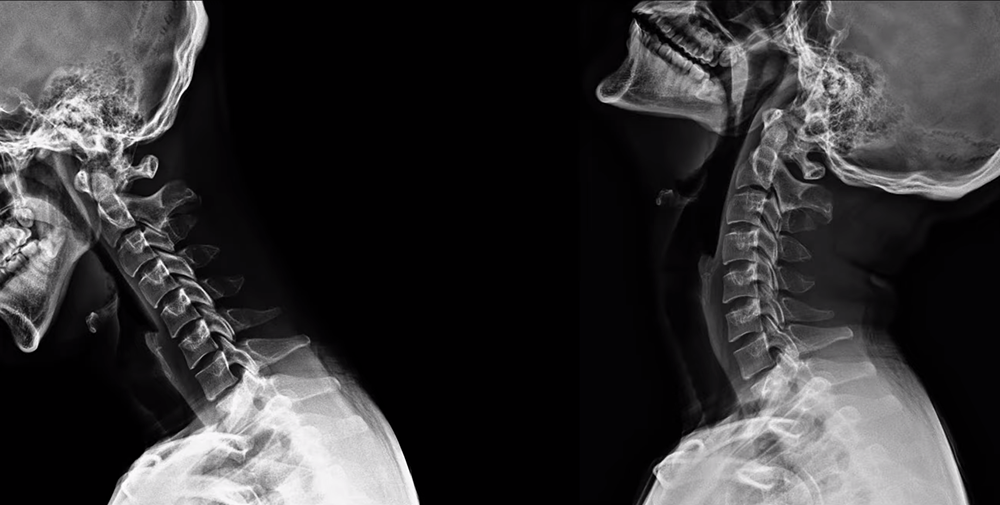 위 X-ray를 보면 정상적인 C자 커브를 가진 사람도 고개를 숙이면 일자목이 만들어지듯이, 거북목인 사람도 목을 뒤로 쭉 젖히면 순간적으로 C자 커브가 만들어질 수 있습니다. 그래서 거북목, 일자목 환자는 목을 뒤로 젖히는 운동을 지속적으로 해줘야 하는 것인데요. 이게 바로 맥켄지 운동입니다.