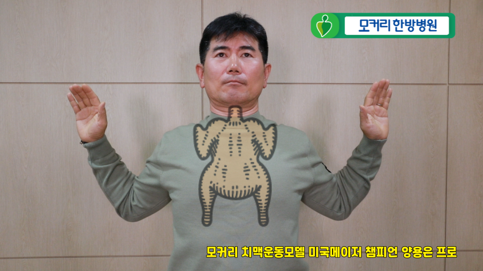 치킨 운동은 굽은 어깨와 등을 펴주는 가장 기본적인 운동인데요. 닭날개처럼 양팔을 벌려 어깨와 등을 펴주는 운동이라고 해서 치킨 운동입니다.