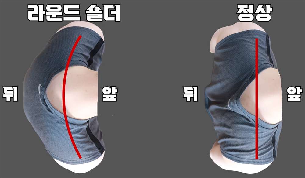 이렇게 어깨가 몸 앞쪽으로 말려있는 상태를 말린 어깨, 즉 라운드 숄더라고 하는데, 이 라운드 숄더가 목과 어깨를 망치는 자세입니다. 어깨가 앞쪽으로 말리면, 어깨의 구조상 손상되게 되어 있습니다. 더 자세한 내용은 아래 영상을 보시길 바랍니다.