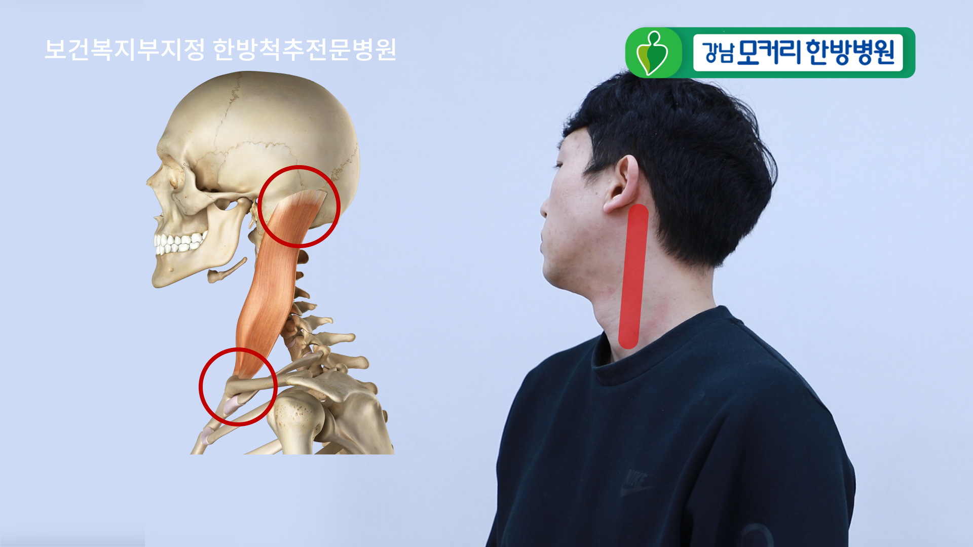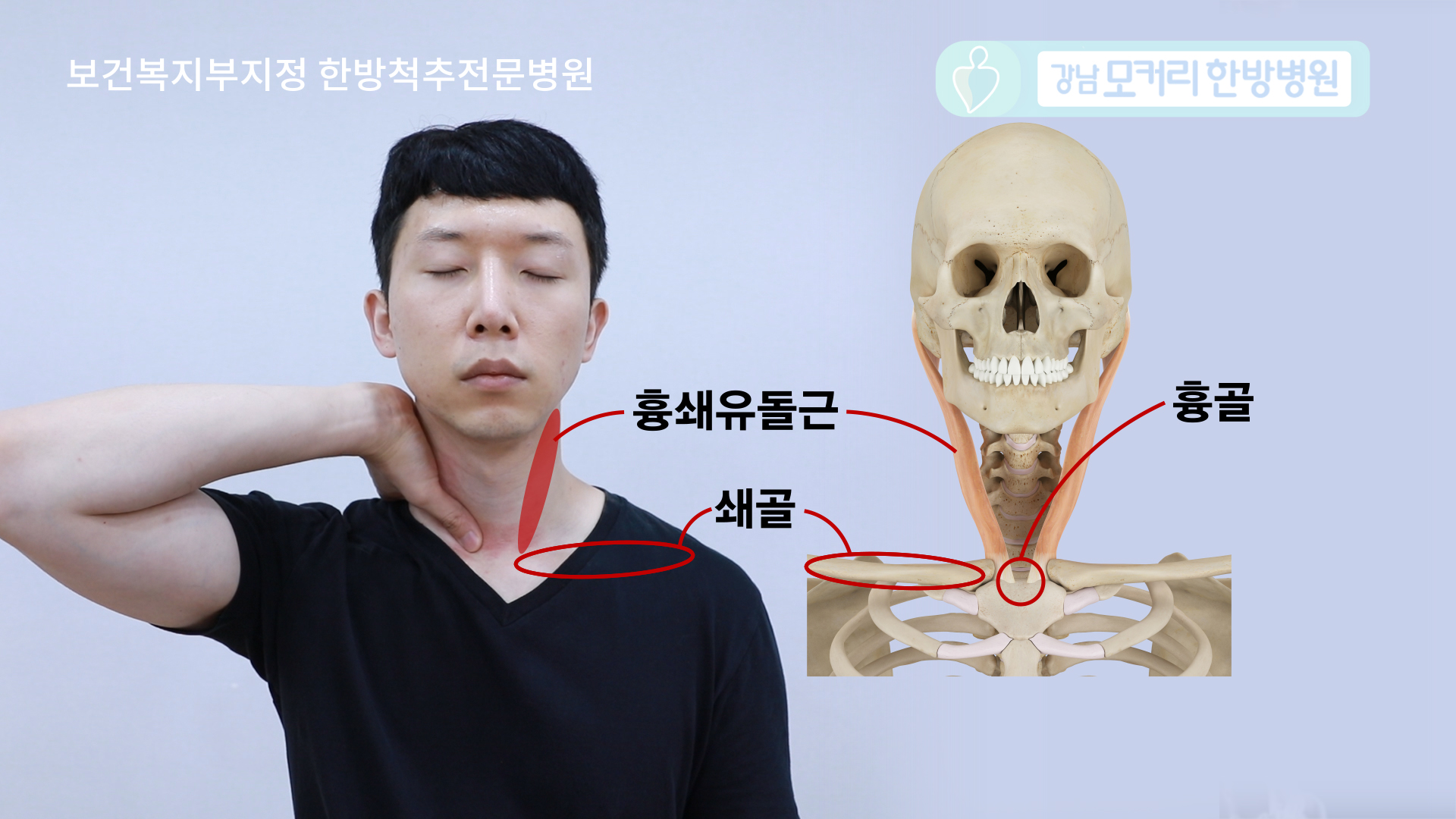 이번에는 목의 앞쪽 근육, 보통 SCM이라고 부르는 흉쇄유돌근을 풀어보겠습니다.