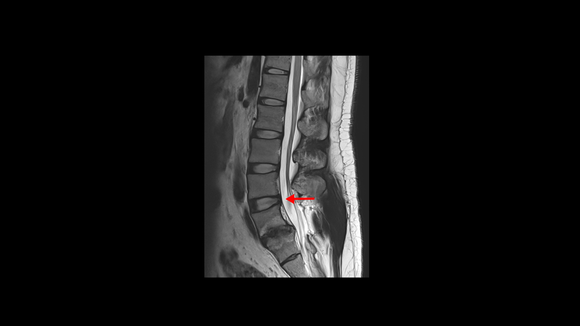 그런데 척추유합술 후 또는 척추감압술 후 이렇게 아픈 환자분들이 매우 많습니다. 척추수술 후에 아픈 이유는 여러 가지가 있을 수 있지만 이 환자분은 명확하게 신경의 문제가 아닙니다. 첫째, 수술 직후 2년간 결과가 좋았었고, 그건 신경 감압이 잘 되었고 신경 감압 효과가 즉시 잘 나타났다는 의미입니다. 또 2년 후에 다시 아픈 이유도 우리가 흔히 얘기하는 인접 분절 질환도 아닙니다. 척추유합술을 하고 나면 몇 년 후에 수술 부위 위나 아래 마디에서 문제가 생기는 경우가 많습니다. 그걸 인접분절질환이라고 합니다. 그런데 이 환자분은 보시다시피 위 마디의 디스크도 깨끗합니다. 그럼 무슨 이유로 아픈 걸까요? 당연히 근육 문제입니다.