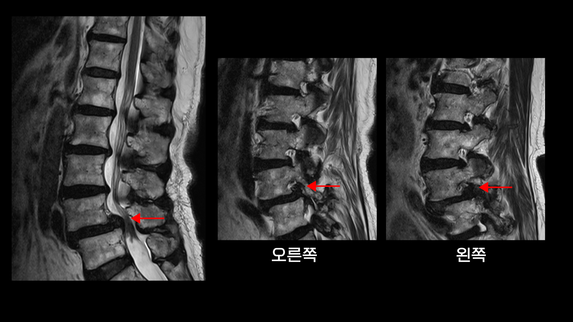 그리고 척추관도 황색인대가 심하게 두꺼워지면서 중심성 협착도 매우 심합니다.