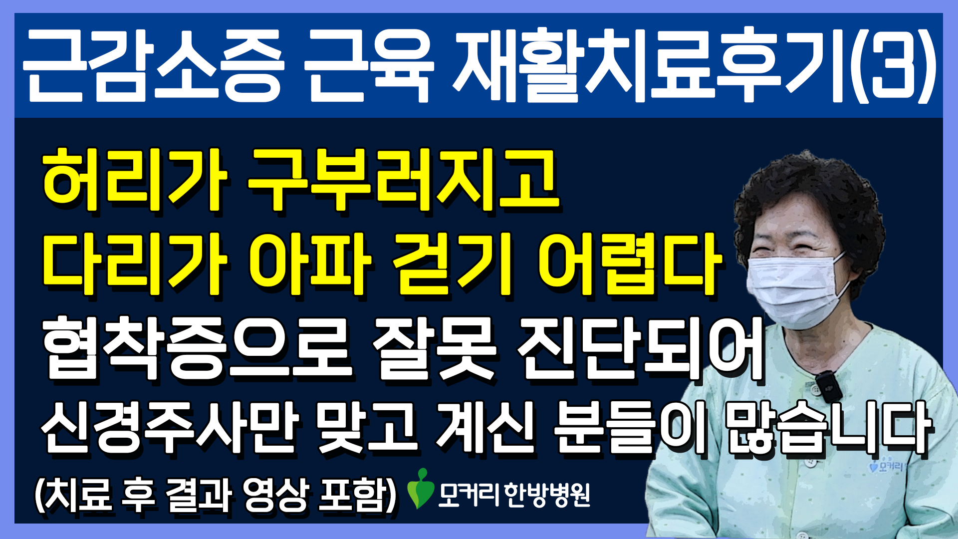 허리가 구부러지고 걷기도 어려운 환자가 어떻게 근력 운동을 할 수가 있겠습니까? 근감소가 이제 시작되는 더 젊은 사람들에게나 가능한 근력 운동만을 강조하는 게 지금 근감소증 대책의 전부인 겁니다. 저희 병원은 이런 중증의 거동이 어렵고 허리가 구부러지고 운동도 어려운 중증의 근감소증 환자분들을 치료하고 있고, 좋은 치료 결과들을 내고 있고 이렇게 치료 후기도 보여드리고 있습니다.