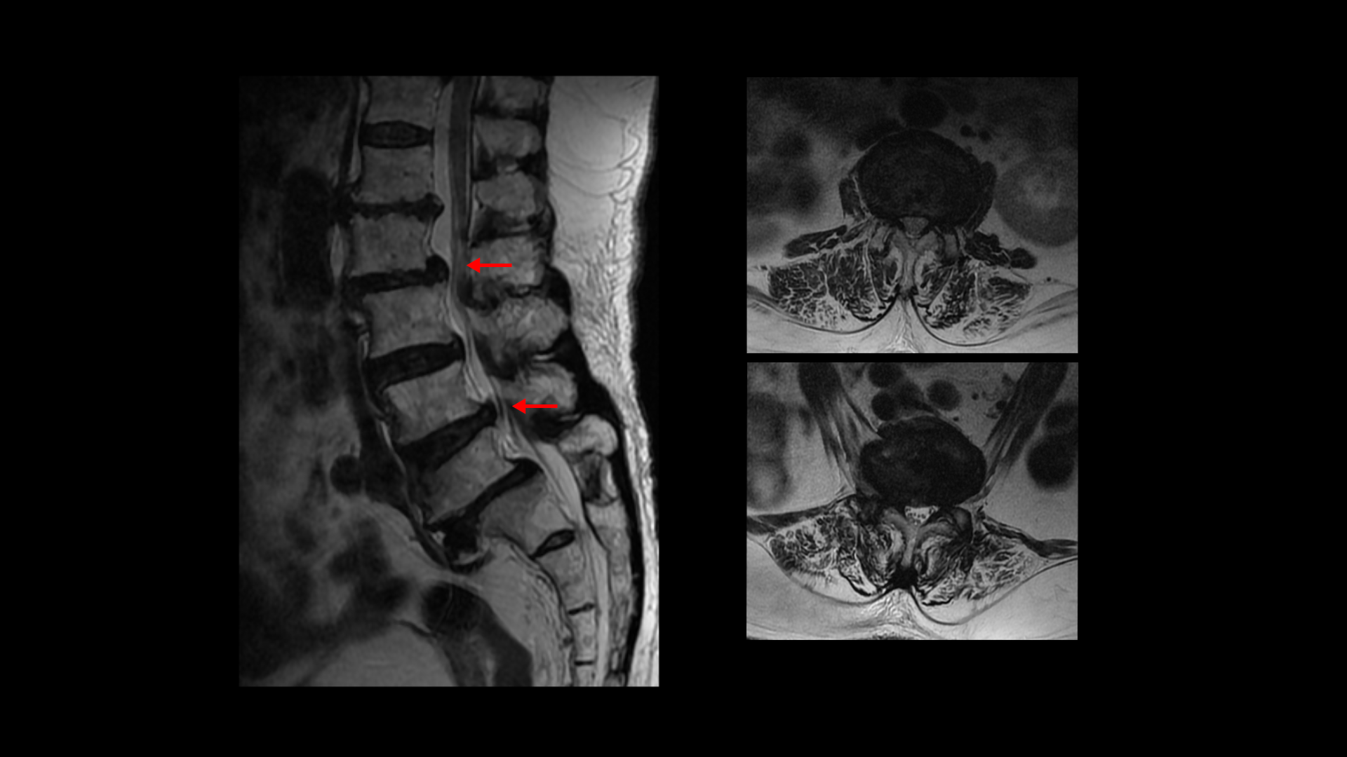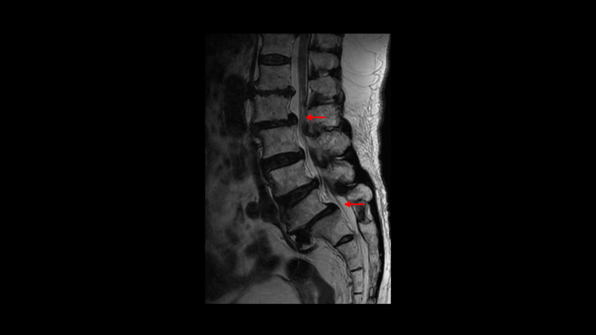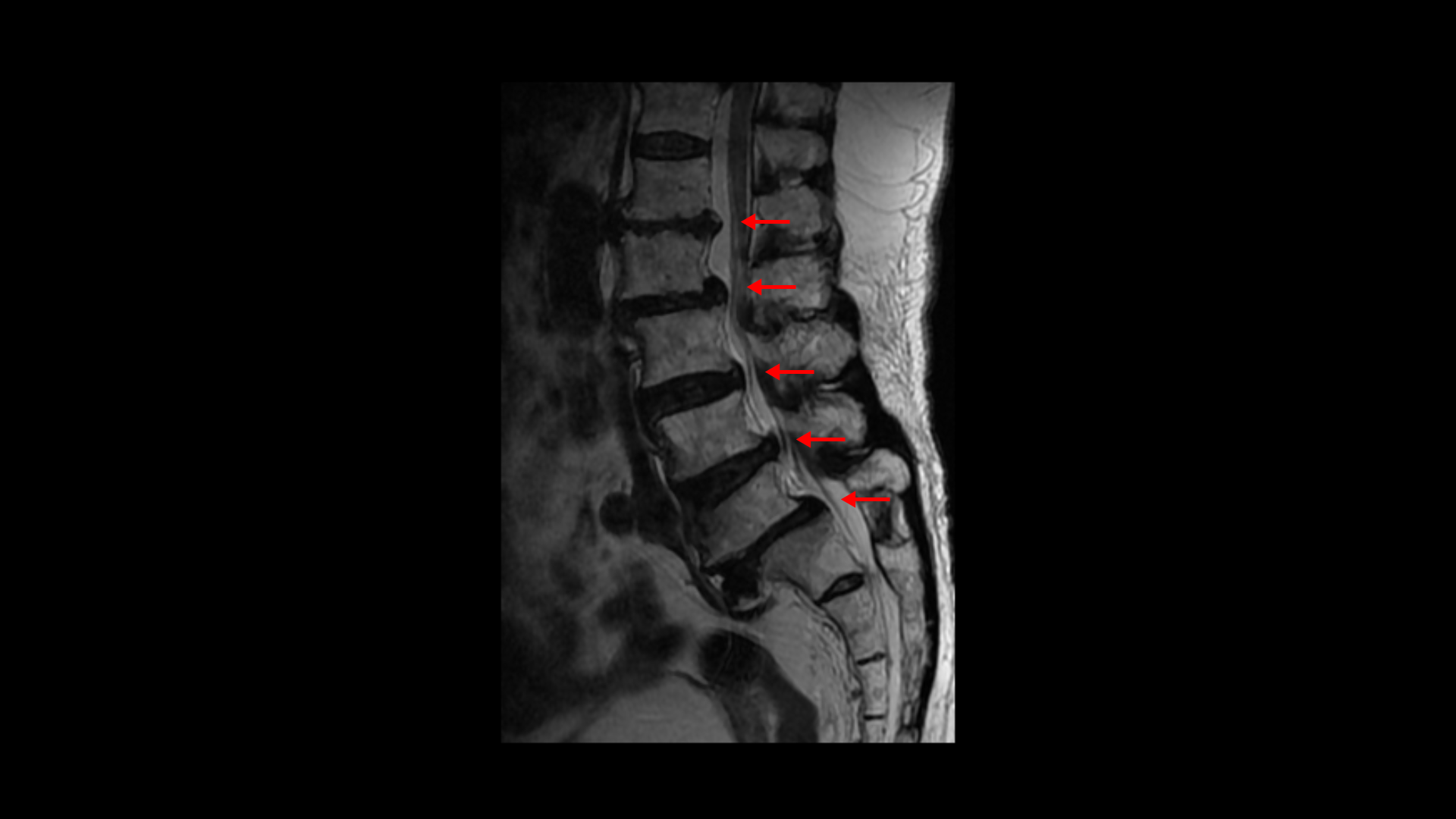 이분 MRI를 보면 보시다시피 허리의 5마디가 전부 퇴행이 진행되어 있습니다.