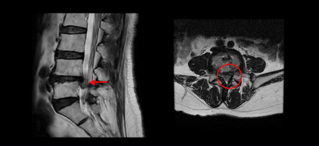이 환자분에 대해 제가 더 자세히 설명 드리겠습니다. 이분은 아파트 쓰레기장에서 오이 껍질을 밟고 미끄러진 후 허리디스크가 터지면서 극심한 방사통이 발생했습니다.