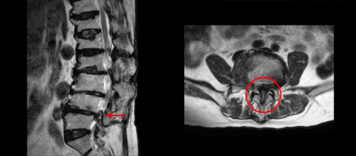 또 신경 가지가 빠져나가는 추간공도 좁아져 있습니다. 이런 이유로 환자분의 다리가 저리고 아픈 겁니다.