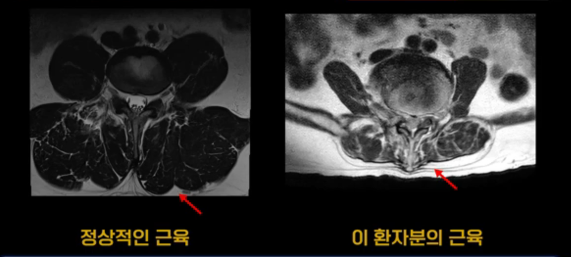 그래서 뭉친 근육을 치료해서 풀어주고 쉬고 운동하고 풀어주고 쉬고 운동하고를 하루에도 4~5회 반복하는 겁니다. 이런 치료를 4주 정도 지속하다 보면 오랫동안 수년간에 걸쳐 뭉치고 굳어있는 근육들이 풀리고 근육의 기능이 좋아지니까 통증이 줄어들고 또 기능이 좋아진 근육이 허리를 더 잘 지탱하게 되니까 방사통이 없어지거나 훨씬 덜 느끼게 되는 겁니다. 이 환자분 말씀 더 들어보고 하루의 4번, 5번의 근육 치료는 어떤 방법으로 하는지 더 자세히 알아보겠습니다.