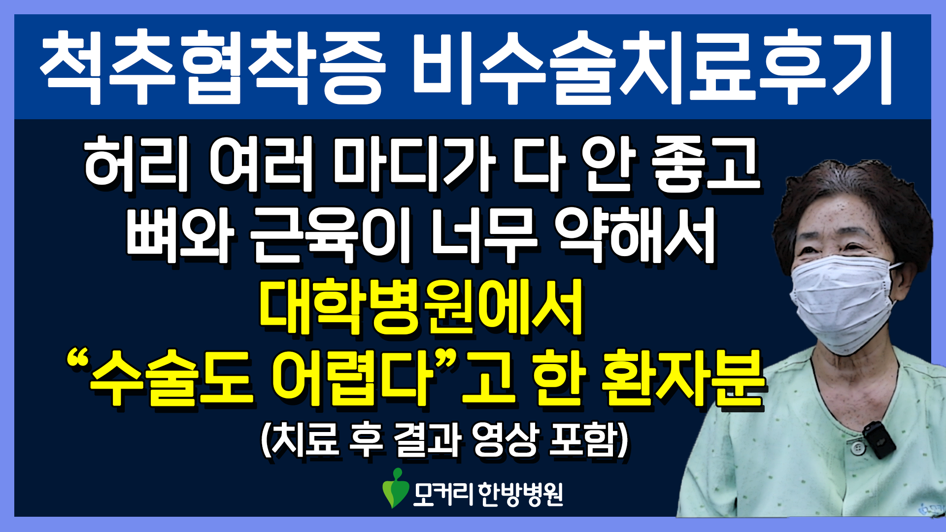 척추협착증 근육재활치료후기, 뼈와 근육이 약해 대학병원에서 수술도 어렵다고 한 환자분, 여러 마디 협착이 아무리 심해도 근육이 좋아지면 협착증이 좋아집니다.