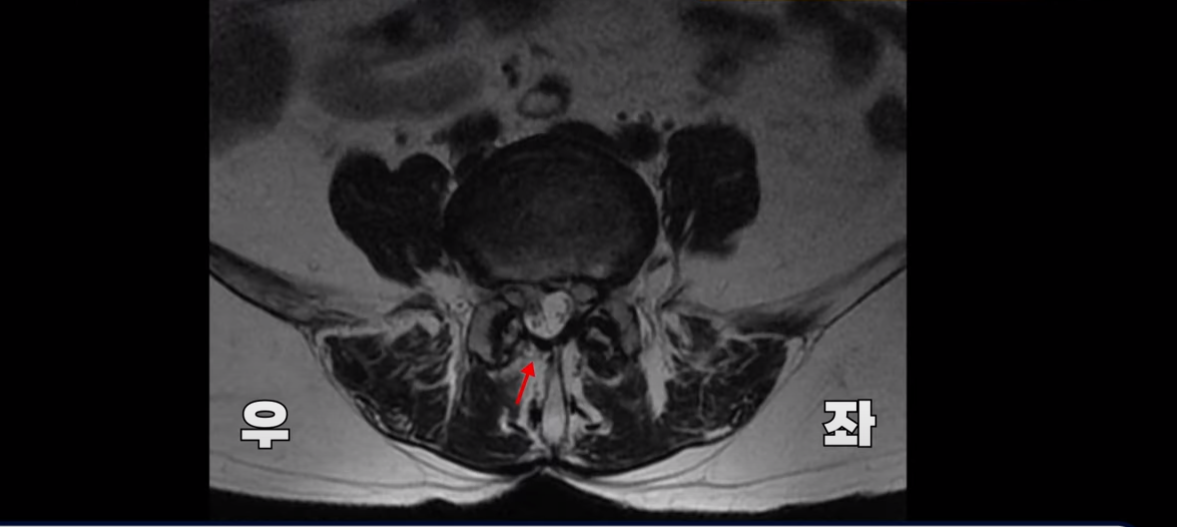 그래서 이분은 오른쪽 엉덩이와 오른쪽 다리에 심한 방사통이 있으셨습니다.