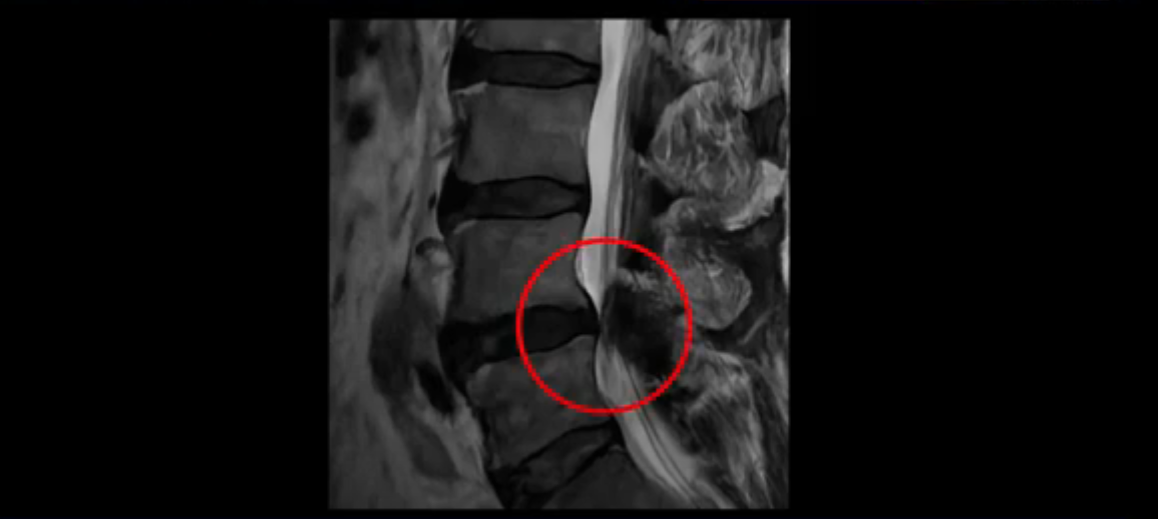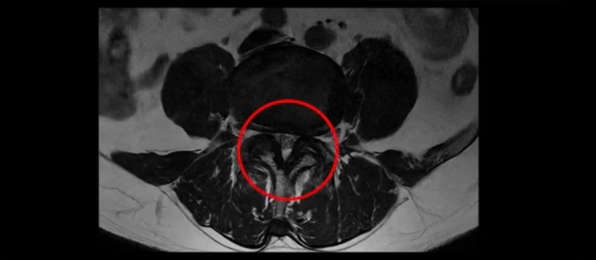 이분은 협착증 환자입니다. 이분 MRI 보면서 상태를 설명해 드린 후 어떻게 협착증이 수술 없이 치료가 가능한지 설명해 드리도록 하겠습니다. 이분 MRI에 보시면 4번, 5번 마디의 중심성 협착증이 있습니다.