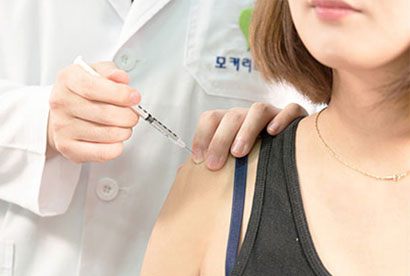 벌의 침에서 추출 및 정제하여 만든 봉침은 뛰어난 항염증, 진통 효과를 지니고 있으며, 이는 이미 과학적이고 객관적으로 충분히 검증되었습니다. 이러한 봉침의 항염증, 진통효과 덕분에 모커리에서는 무릎관절염과 목ㆍ허리디스크, 어깨 통증, 엘보 통증, 허리 통증 등 척추관절질환의 염증을 치료하기 위해 봉침을 오랜 기간 사용해 왔고, 또 치료에 좋은 효과를 보고 있습니다. 단, 알레르기가 있는 분들은 맞을 수 없기 때문에 치료 전 반드시 검사를 실시해야 합니다.