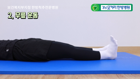 자연스럽게 누운 상태에서 두 다리를 가지런히 모아주세요. 그 다음, 발목을 내 몸 쪽으로 살짝 구부렸다가 그 자세를 잠시 유지한 다음, 다시 펴줍니다. 발끝을 내 몸 쪽으로 구부릴 때는 종아리 근육과 대퇴부, 허벅지 근육의 중간 정도까지만 힘이 느껴지도록 구부려주면 됩니다.