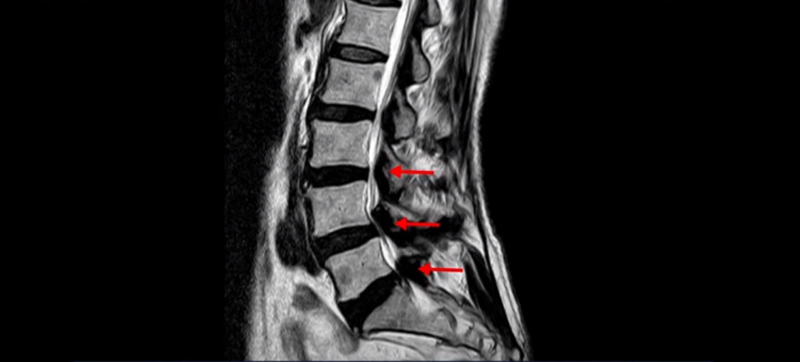 실제 저희 치료후기에 나오는 환자분들의 사례를 들어 설명해드리겠습니다. 이분 MRI를 보면 여러 군데 협착이 있는데,